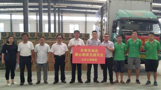 8月27日,運(yùn)送捐贈(zèng)物資的三星人兵分兩路,從鄒平總部出發(fā),奔赴壽光、青州兩處重災(zāi)區(qū),將捐贈(zèng)物資600箱長(zhǎng)壽花金胚玉米油、200箱長(zhǎng)壽花醬油,于當(dāng)天上午分別運(yùn)抵壽光市、青州市慈善總會(huì)的救災(zāi)物資指定接收點(diǎn),順利交給兩市接收單位。